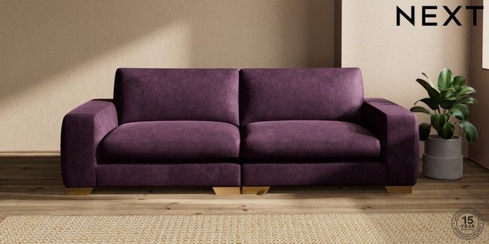 7.2.10 Houghton Deep Sit 4 Seater Sofa Plush Chenille Dark Plum Purple Large Square Angle - Brushed Brass | Made Click here to use our website with more accessibility support, for example screen readers