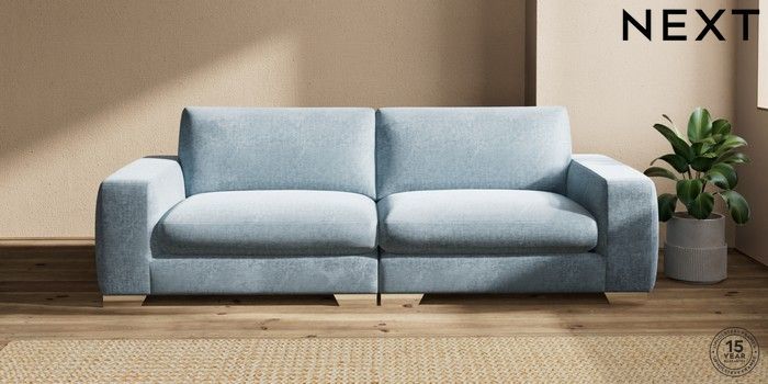 7.2.10 Houghton Deep Sit 4 Seater Sofa Plush Chenille Light Blue Large Square Angle - Chrome Metal | Made Click here to use our website with more accessibility support, for example screen readers