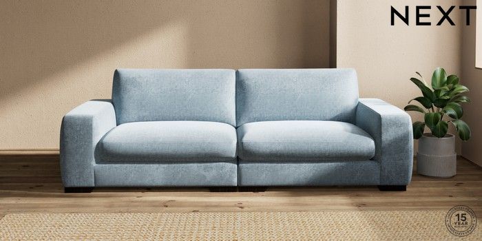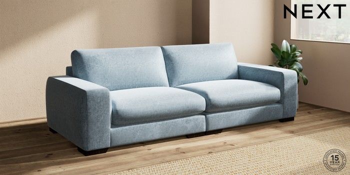 7.2.10 Houghton Deep Sit 4 Seater Sofa Plush Chenille Light Blue Large Square Angle - Dark | Made Click here to use our website with more accessibility support, for example screen readers
