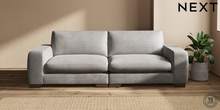 7.2.10 Houghton Deep Sit 4 Seater Sofa Plush Chenille Light Grey Large Square Angle - Gunmetal | Made Click here to use our website with more accessibility support, for example screen readers