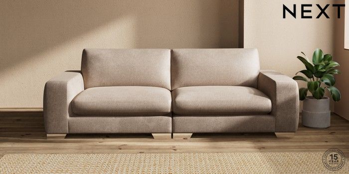 7.2.10 Houghton Deep Sit 4 Seater Sofa Plush Chenille Mid Natural Large Square Angle - Chrome Metal | Made Click here to use our website with more accessibility support, for example screen readers