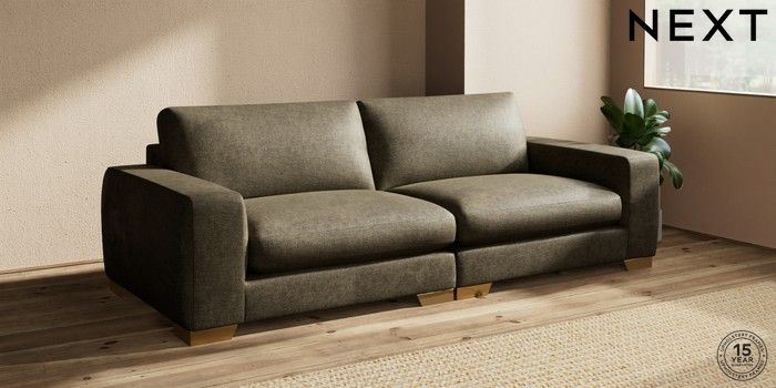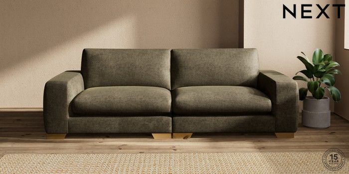 7.2.10 Houghton Deep Sit 4 Seater Sofa Plush Chenille Moss Green Large Square Angle - Brushed Brass | Made Click here to use our website with more accessibility support, for example screen readers