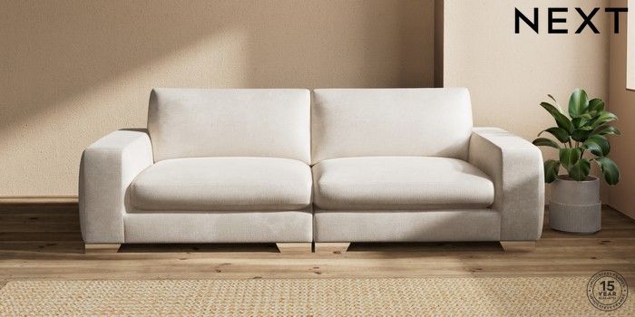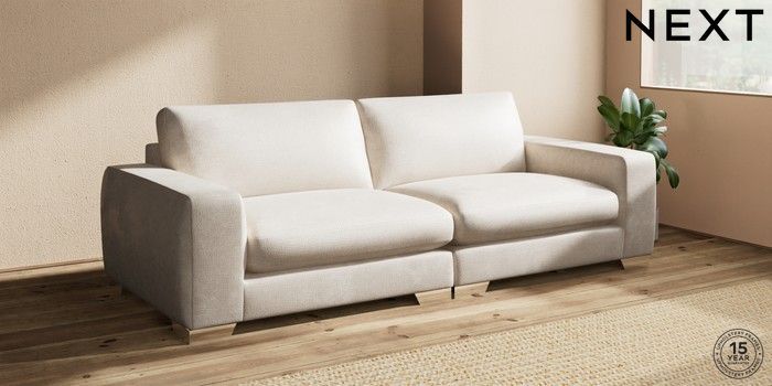 7.2.10 Houghton Deep Sit 4 Seater Sofa Plush Chenille Oyster Large Square Angle - Chrome Metal | Made Click here to use our website with more accessibility support, for example screen readers