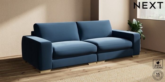 7.2.10 Houghton Deep Sit 4 Seater Sofa Plush Velvet Easy Clean Airforce Blue Large Square Angle - Light | Made Click here to use our website with more accessibility support, for example screen readers