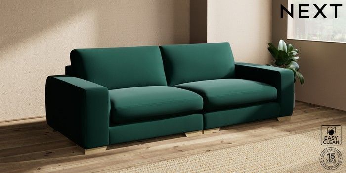 7.2.10 Houghton Deep Sit 4 Seater Sofa Plush Velvet Easy Clean Bottle Green Large Square Angle - Light | Made Click here to use our website with more accessibility support, for example screen readers