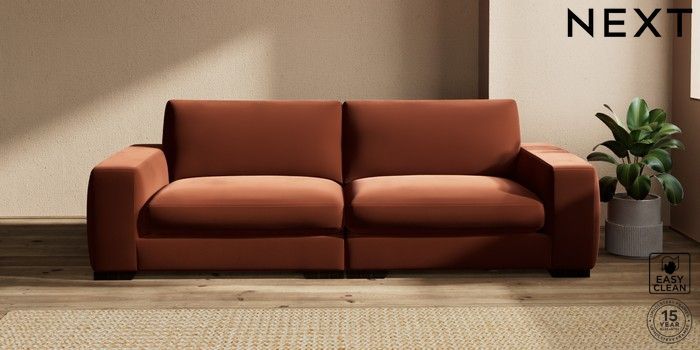 7.2.10 Houghton Deep Sit 4 Seater Sofa Plush Velvet Easy Clean Ginger Orange Large Square Angle - Dark | Made Click here to use our website with more accessibility support, for example screen readers