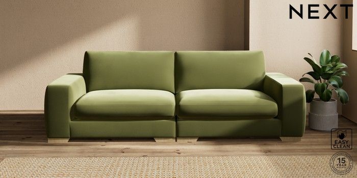 7.2.10 Houghton Deep Sit 4 Seater Sofa Plush Velvet Easy Clean Mid Olive Green Large Square Angle - Light | Made Click here to use our website with more accessibility support, for example screen readers
