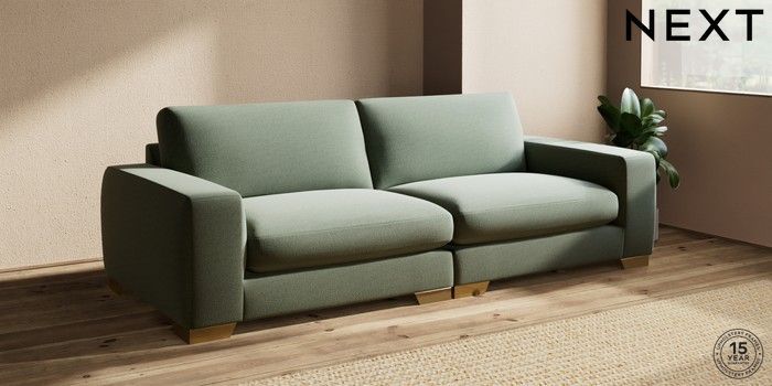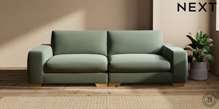 7.2.10 Houghton Deep Sit 4 Seater Sofa Relaxed Linen Look Dark Green Large Square Angle - Brushed Brass | Made Click here to use our website with more accessibility support, for example screen readers