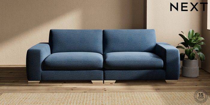 7.2.10 Houghton Deep Sit 4 Seater Sofa Ripple Chenille Dark Blue Large Square Angle - Chrome Metal | Made Click here to use our website with more accessibility support, for example screen readers