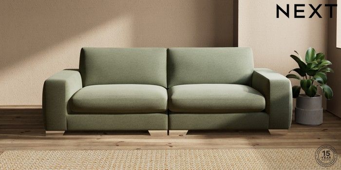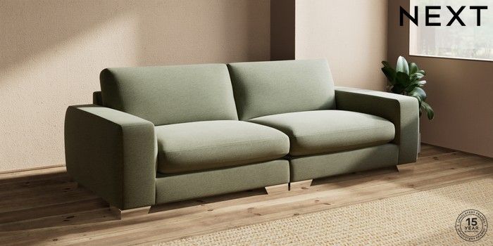 7.2.10 Houghton Deep Sit 4 Seater Sofa Ripple Chenille Mid Moss Green Large Square Angle - Chrome Metal | Made Click here to use our website with more accessibility support, for example screen readers