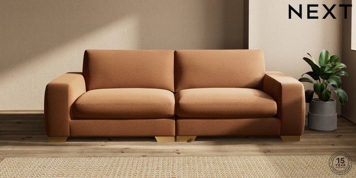 7.2.10 Houghton Deep Sit 4 Seater Sofa Ripple Chenille Mid Rust Brown Large Square Angle - Brushed Brass | Made Click here to use our website with more accessibility support, for example screen readers
