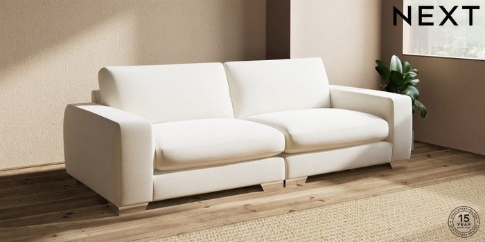 7.2.10 Houghton Deep Sit 4 Seater Sofa Ripple Chenille Oyster Large Square Angle - Chrome Metal | Made Click here to use our website with more accessibility support, for example screen readers