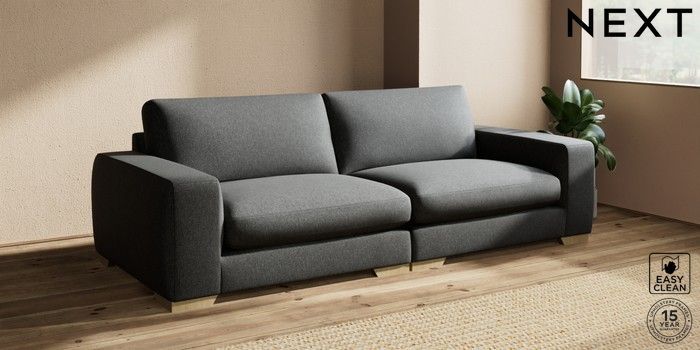 7.2.10 Houghton Deep Sit 4 Seater Sofa Tweedy Blend Easy Clean Charcoal Grey Large Square Angle - Light | Made Click here to use our website with more accessibility support, for example screen readers