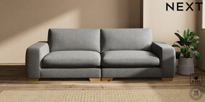 7.2.10 Houghton Deep Sit 4 Seater Sofa Tweedy Blend Easy Clean Dark Grey Large Square Angle - Brushed Brass | Made Click here to use our website with more accessibility support, for example screen readers