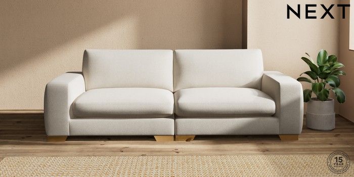 7.2.10 Houghton Deep Sit 4 Seater Sofa Tweedy Chenille Oyster Large Square Angle - Brushed Brass | Made Click here to use our website with more accessibility support, for example screen readers