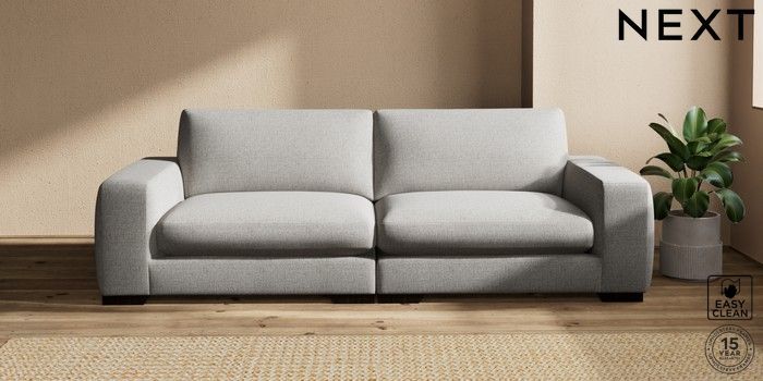 7.2.10 Houghton Deep Sit 4 Seater Sofa Woven Chenille Easy Clean Light Grey Large Square Angle - Dark | Made Click here to use our website with more accessibility support, for example screen readers