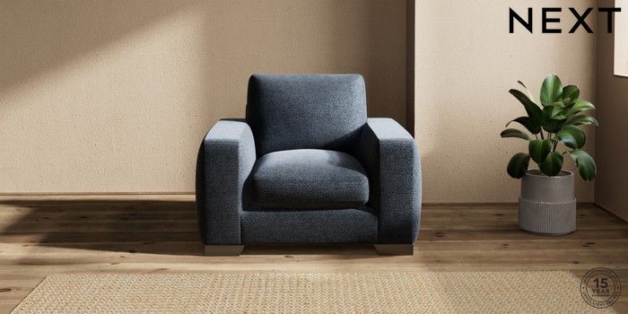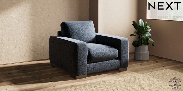 7.2.10 Houghton Deep Sit Armchair Boucle Chenille Dark Slate Blue Large Square Angle - Gunmetal | Made Click here to use our website with more accessibility support, for example screen readers