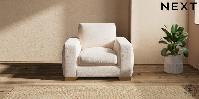7.2.10 Houghton Deep Sit Armchair Boucle Chenille Oyster Large Square Angle - Brushed Brass | Made Click here to use our website with more accessibility support, for example screen readers