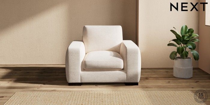 7.2.10 Houghton Deep Sit Armchair Boucle Chenille Oyster Large Square Angle - Dark | Made Click here to use our website with more accessibility support, for example screen readers