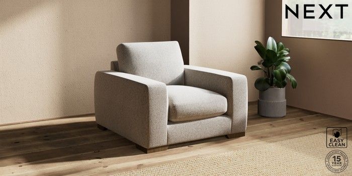 7.2.10 Houghton Deep Sit Armchair Chunky Boucle Easy Clean Dove Large Square Angle - Mid | Made Click here to use our website with more accessibility support, for example screen readers