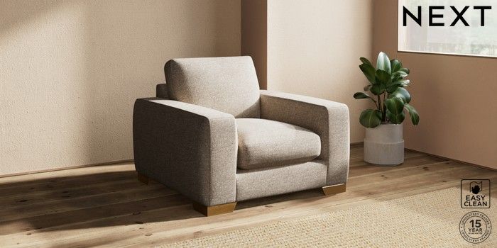7.2.10 Houghton Deep Sit Armchair Chunky Boucle Easy Clean Mid Natural Large Square Angle - Brushed Brass | Made Click here to use our website with more accessibility support, for example screen readers