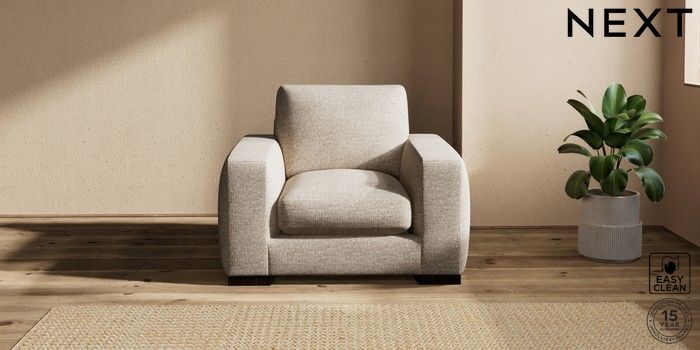 7.2.10 Houghton Deep Sit Armchair Chunky Boucle Easy Clean Mid Natural Large Square Angle - Dark | Made Click here to use our website with more accessibility support, for example screen readers