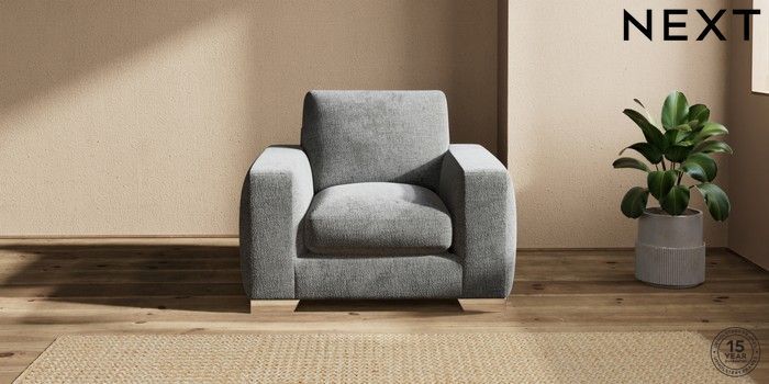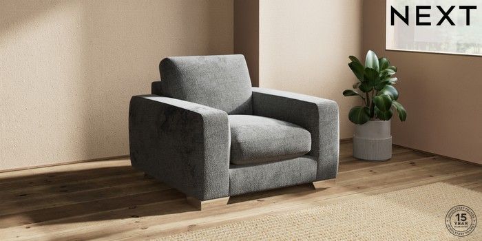 7.2.10 Houghton Deep Sit Armchair Chunky Chenille Dark Grey Large Square Angle - Chrome Metal | Made Click here to use our website with more accessibility support, for example screen readers
