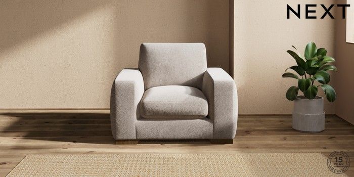 7.2.10 Houghton Deep Sit Armchair Chunky Chenille Light Dove Large Square Angle - Mid | Made Click here to use our website with more accessibility support, for example screen readers