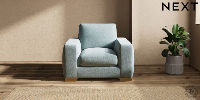 7.2.10 Houghton Deep Sit Armchair Chunky Marl Mid Blue Large Square Angle - Brushed Brass | Made Click here to use our website with more accessibility support, for example screen readers