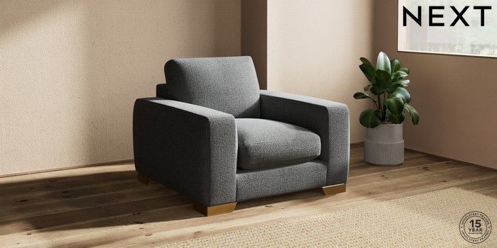 7.2.10 Houghton Deep Sit Armchair Chunky Texture Dark Grey Large Square Angle - Brushed Brass | Made Click here to use our website with more accessibility support, for example screen readers