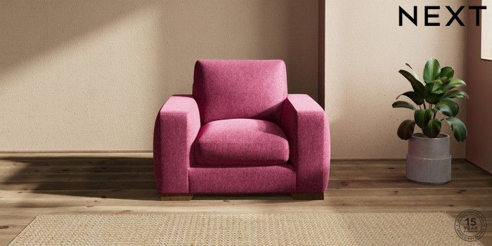 7.2.10 Houghton Deep Sit Armchair Cotswold Chenille Dark Raspberry Pink Large Square Angle - Mid | Made Click here to use our website with more accessibility support, for example screen readers