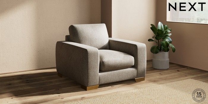7.2.10 Houghton Deep Sit Armchair Cotswold Chenille Mid Mink Brown Large Square Angle - Brushed Brass | Made Click here to use our website with more accessibility support, for example screen readers