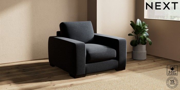 7.2.10 Houghton Deep Sit Armchair Fine Chenille Easy Clean Black Large Square Angle - Dark | Made Click here to use our website with more accessibility support, for example screen readers