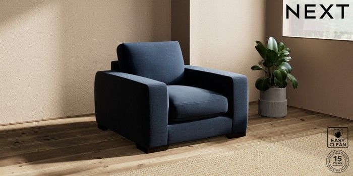 7.2.10 Houghton Deep Sit Armchair Fine Chenille Easy Clean Dark Navy Blue Large Square Angle - Dark | Made Click here to use our website with more accessibility support, for example screen readers