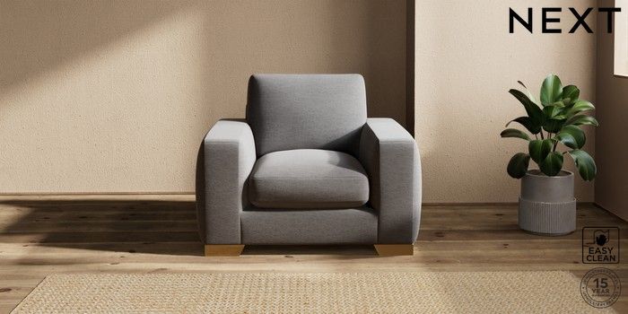 7.2.10 Houghton Deep Sit Armchair Fine Chenille Easy Clean Dark Smoke Grey Large Square Angle - Brushed Brass | Made Click here to use our website with more accessibility support, for example screen readers
