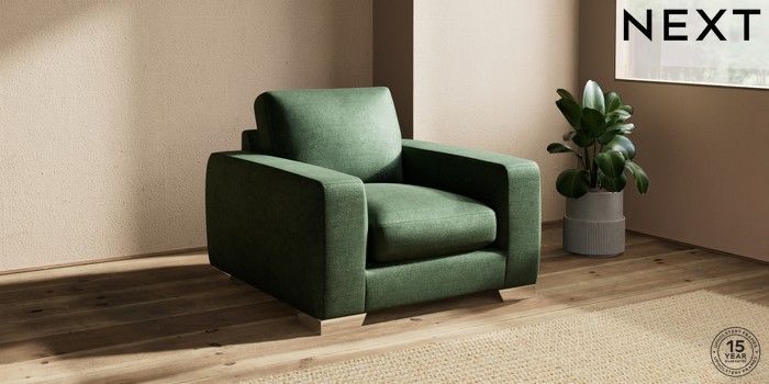 7.2.10 Houghton Deep Sit Armchair Luxe Chenille Dark Green Large Square Angle - Chrome Metal | Made Click here to use our website with more accessibility support, for example screen readers