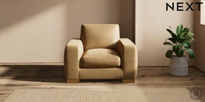 7.2.10 Houghton Deep Sit Armchair Luxe Chenille Honey Yellow Large Square Angle - Brushed Brass | Made Click here to use our website with more accessibility support, for example screen readers