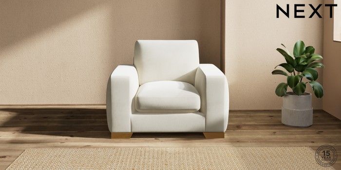 7.2.10 Houghton Deep Sit Armchair Luxe Chenille Oyster Large Square Angle - Brushed Brass | Made Click here to use our website with more accessibility support, for example screen readers