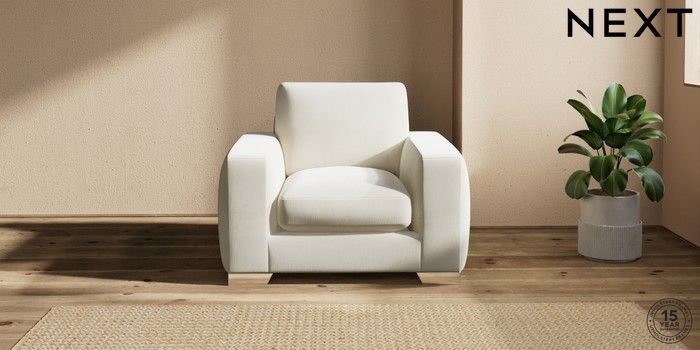 7.2.10 Houghton Deep Sit Armchair Luxe Chenille Oyster Large Square Angle - Chrome Metal | Made Click here to use our website with more accessibility support, for example screen readers
