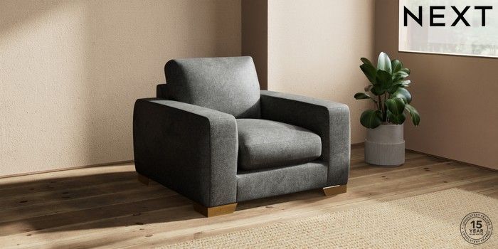 7.2.10 Houghton Deep Sit Armchair Plush Chenille Dark Grey Large Square Angle - Brushed Brass | Made Click here to use our website with more accessibility support, for example screen readers