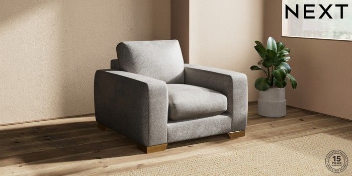 7.2.10 Houghton Deep Sit Armchair Plush Chenille Light Grey Large Square Angle - Brushed Brass | Made Click here to use our website with more accessibility support, for example screen readers