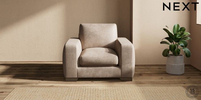 7.2.10 Houghton Deep Sit Armchair Plush Chenille Mid Natural Large Square Angle - Gunmetal | Made Click here to use our website with more accessibility support, for example screen readers