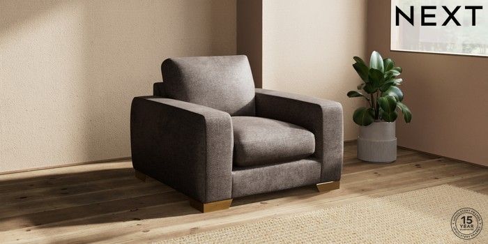 7.2.10 Houghton Deep Sit Armchair Plush Chenille Mink Brown Large Square Angle - Brushed Brass | Made Click here to use our website with more accessibility support, for example screen readers