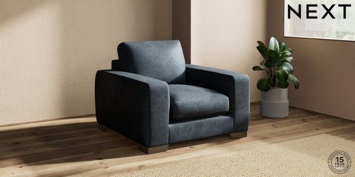 7.2.10 Houghton Deep Sit Armchair Plush Chenille Slate Blue Large Square Angle - Gunmetal | Made Click here to use our website with more accessibility support, for example screen readers