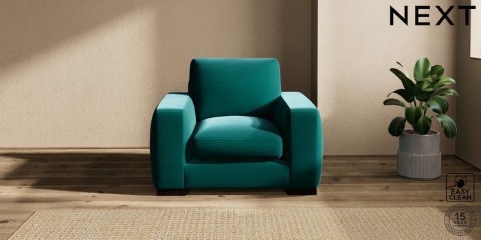 7.2.10 Houghton Deep Sit Armchair Plush Velvet Easy Clean Juniper Green Large Square Angle - Dark | Made Click here to use our website with more accessibility support, for example screen readers