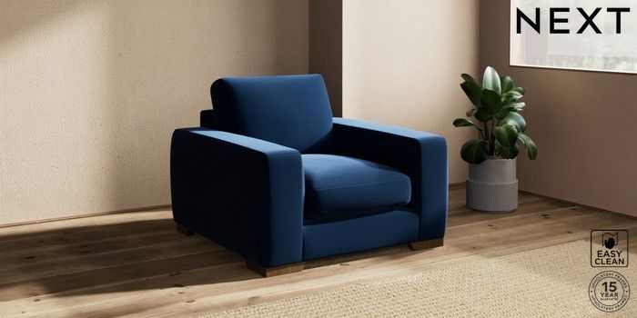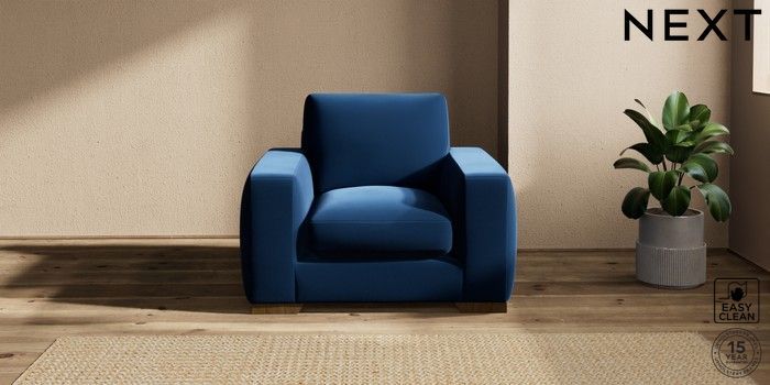 7.2.10 Houghton Deep Sit Armchair Plush Velvet Easy Clean Navy Blue Large Square Angle - Mid | Made Click here to use our website with more accessibility support, for example screen readers