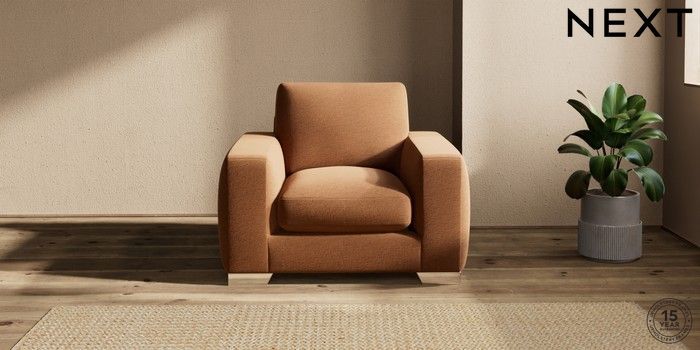 7.2.10 Houghton Deep Sit Armchair Ripple Chenille Mid Rust Brown Large Square Angle - Chrome Metal | Made Click here to use our website with more accessibility support, for example screen readers