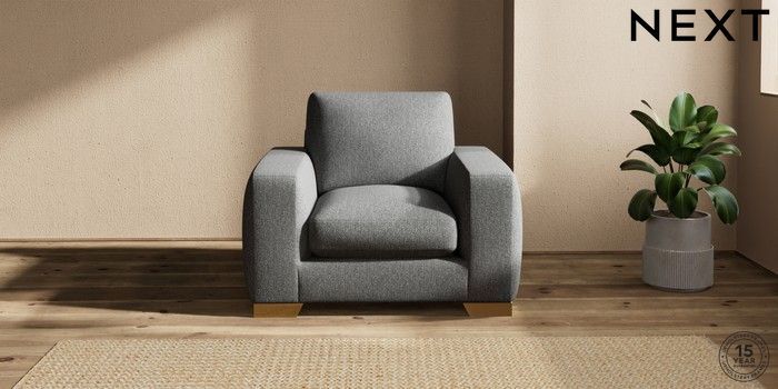 7.2.10 Houghton Deep Sit Armchair Tweedy Chenille Dark Grey Large Square Angle - Brushed Brass | Made Click here to use our website with more accessibility support, for example screen readers