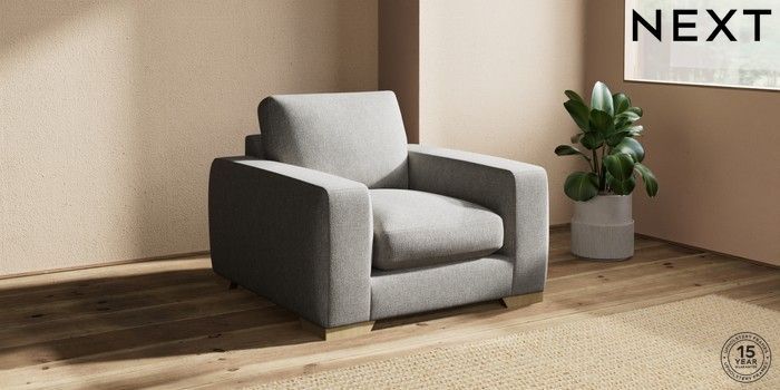7.2.10 Houghton Deep Sit Armchair Tweedy Chenille Mid Grey Large Square Angle - Light | Made Click here to use our website with more accessibility support, for example screen readers
