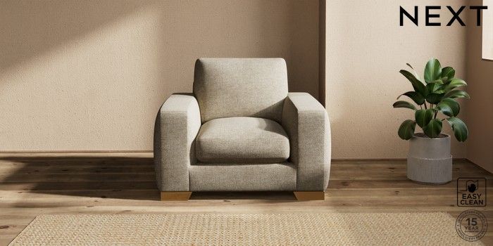 7.2.10 Houghton Deep Sit Armchair Woven Chenille Easy Clean Mid Natural Large Square Angle - Brushed Brass | Made Click here to use our website with more accessibility support, for example screen readers